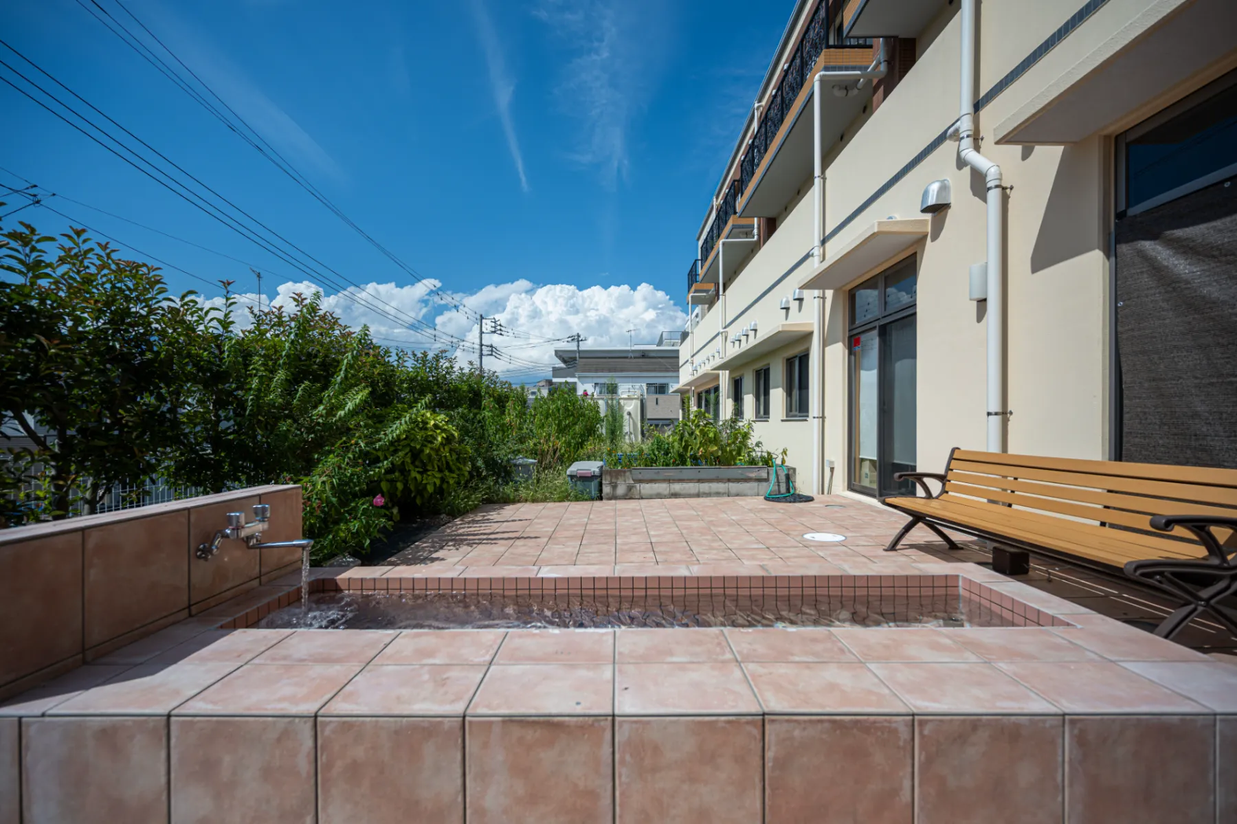 『ガーデン(庭)』花や野菜作りに汗を流したり、仲間と足湯でのんびりしたり。
